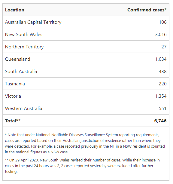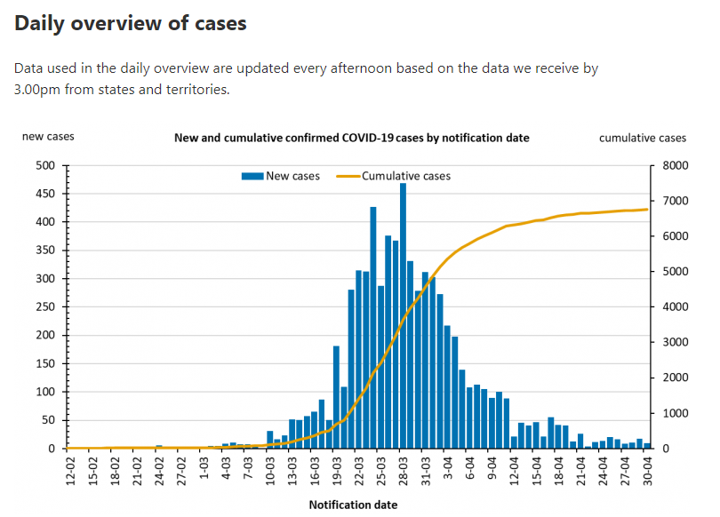 この状況を受けQLDはロックダウンの規制緩和になりました。 ●26日,パラシェ・クイーンズランド(QLD)州首相は,QLD州に於ける新たな感染の発生が極めて減少していると思われる勇気づけられる状況を踏まえ,5月2日(土)の未明(午前零時01分)より、現行の社会的距離の確保等一定の条件の下、QLD州における現在の外出制限(ステイ・アット・ホーム)を一部緩和し,レクリエーション目的の外出が認められると共に,外出可能距離が拡大される旨,発表しました。