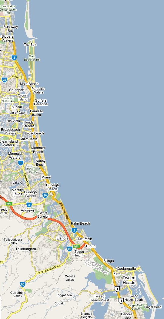ゴールドコーストのビーチ情報。サーフィンできるビーチや泳げるビーチ。ポイントブレイクやビーチブレイク情報。北風できまるビーチや南風できまるビーチを紹介。
