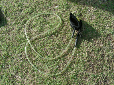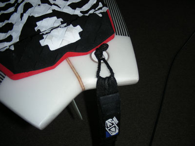 リーシュ・コードと板をつなぐ紐は短くして絶対にテイルにかからないようにしてください。