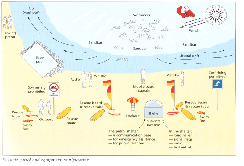 赤と黄色の旗と旗の間はサーフィンしてはいけません。