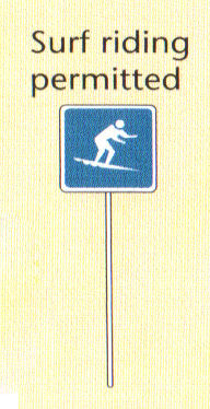 砂浜の右端にあるこのサインからはサーフィンが許可されます。