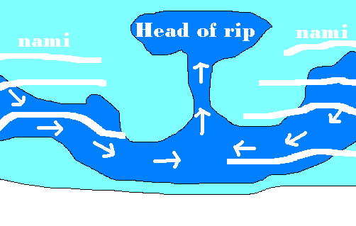 もし、リップにのまれたら混乱せず、落ち着いてリップが治まるまで波の流れに身を任せて