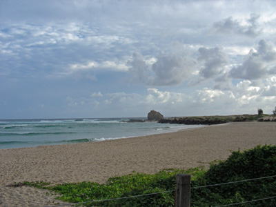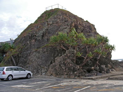 岩が真横にあり、Curuumbin Rockと呼ばれ時折登っているオージーを見かける。波質はたるくロングにも人気のビーチ