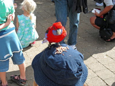 オライリーズでベルバードに餌付けしているところや